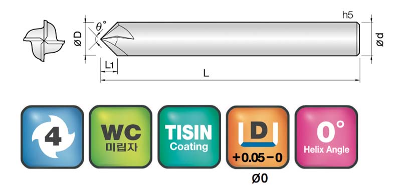 REZKAR STEBELNI ZA POSNEMANJE VHM D4,0mm L=60mm, 90° Z=4 TISIN