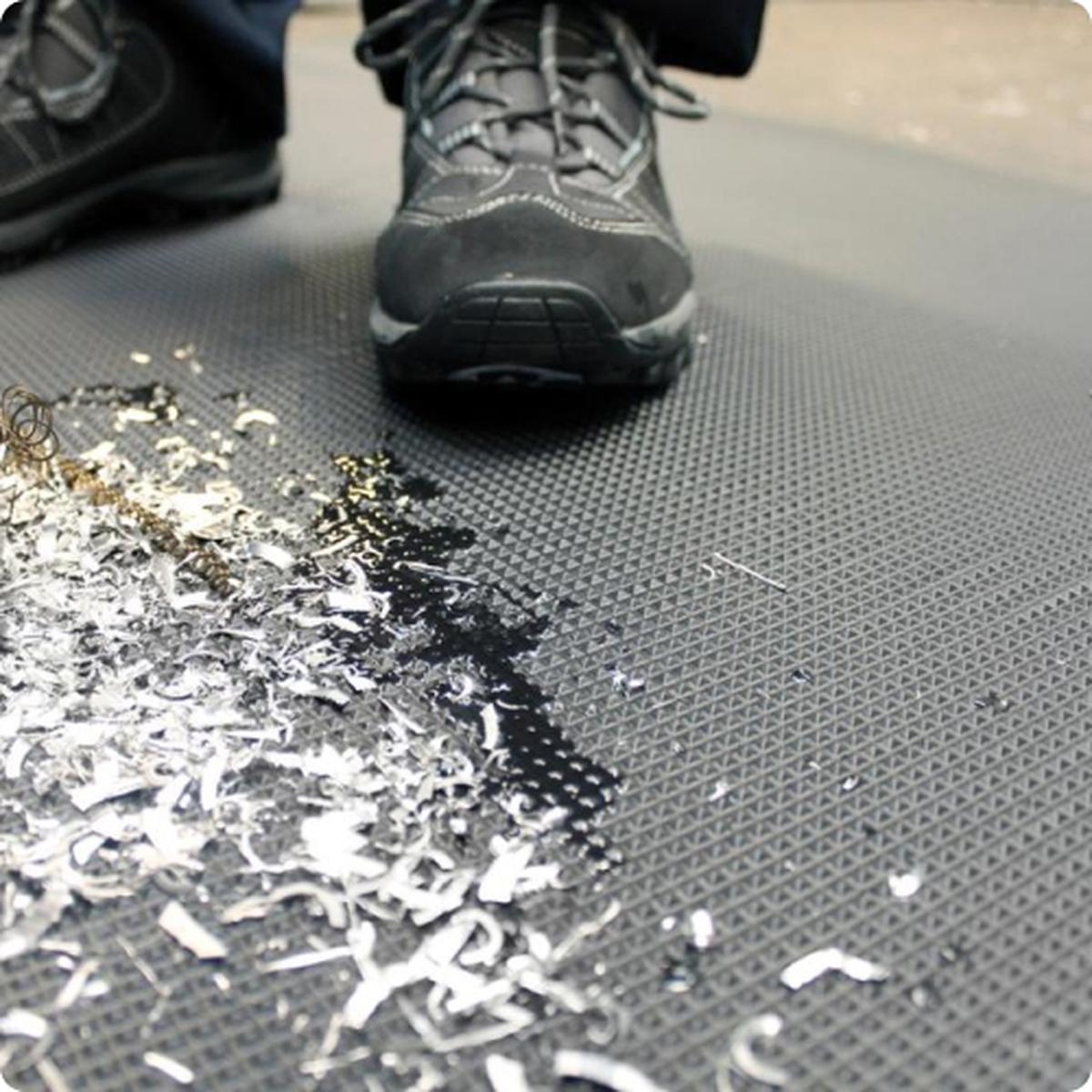 Ta ergonomska talna obloga s penastim PVC-jem na notranji strani zagotavlja odlično razbremenitev mišično-skeletnega sistema.