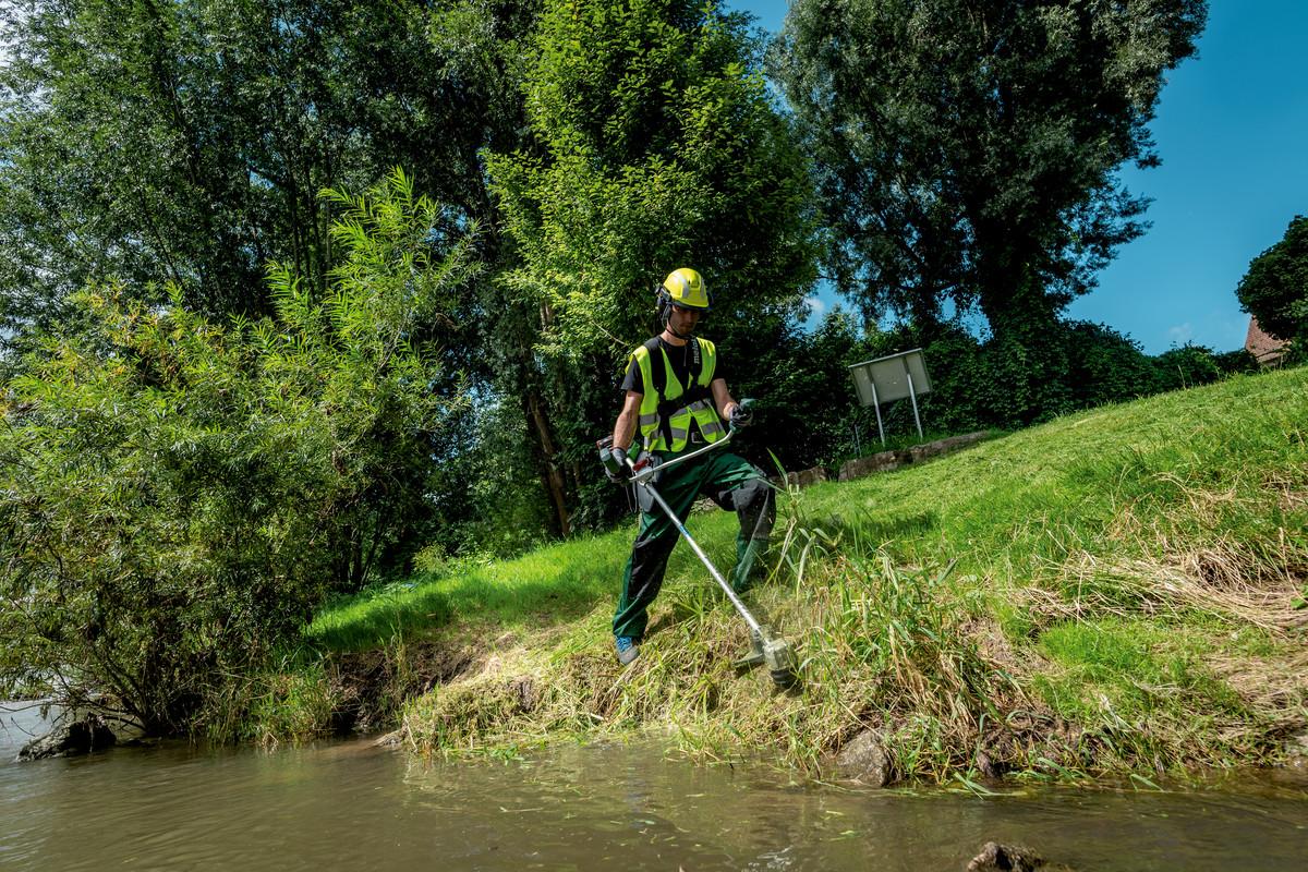 Robustna pri uporabi zahvaljujoč kovinskemu ohišju motorja in dodatnemu zaščitnemu pasu na baterijskih paketih