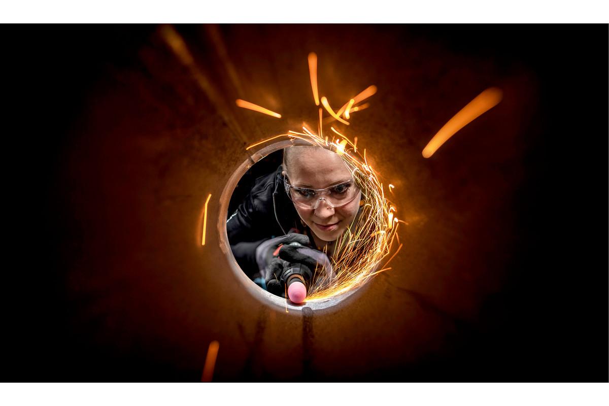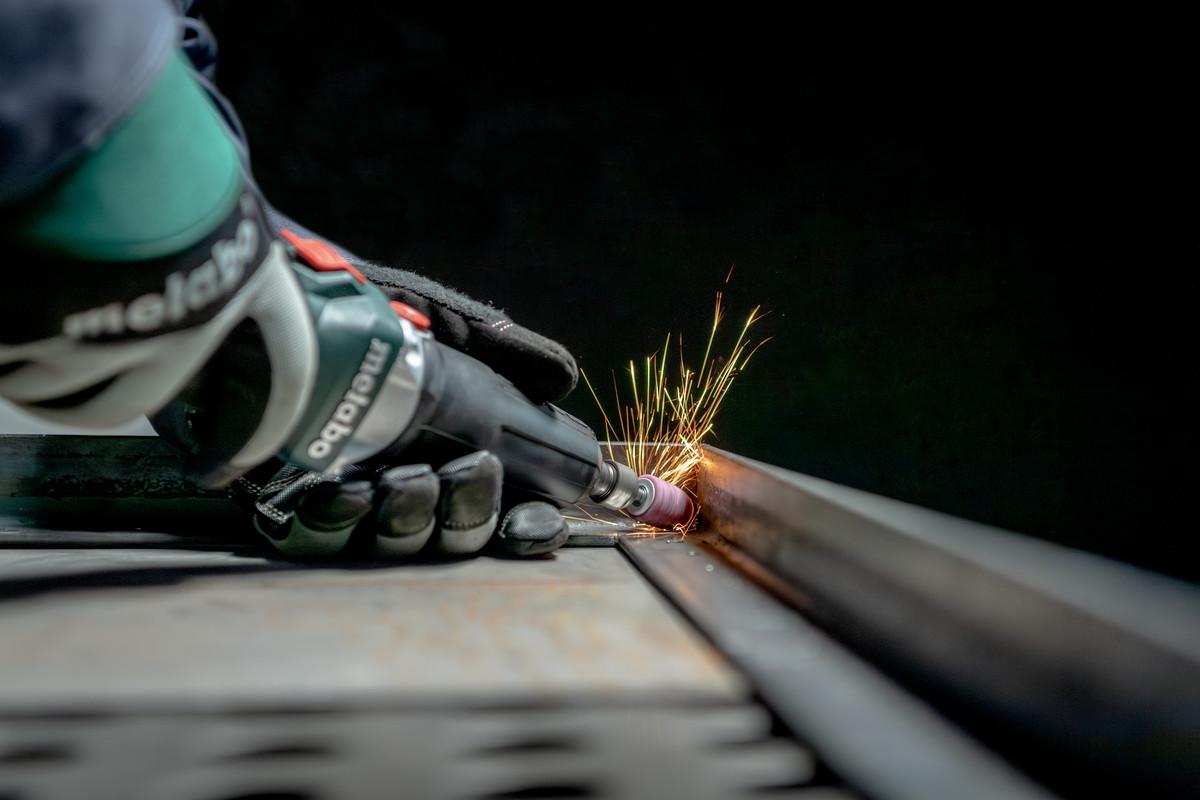 Tanek baterijski premi brusilnik z dolgo brusno gredjo za posnemanje robov, rezkanje, brušenje in rezanje – tudi na težko dostopnih mestih