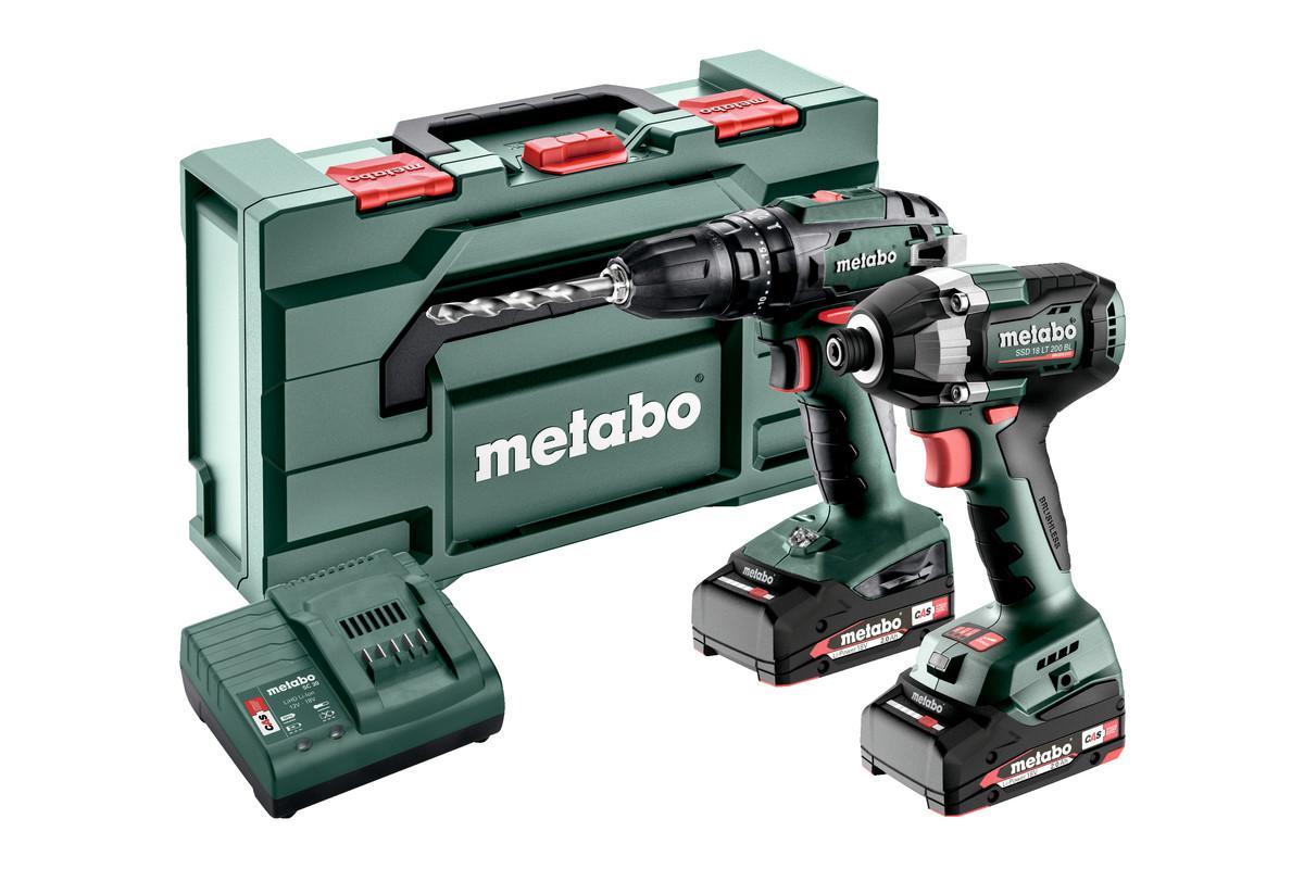 Baterijski udarni vrtalnik SB 18, baterijski udarni vijačnik SSD 18 LT 200 BL, 2 LiPOWER baterijska paketa (18 V/2,0 Ah), polnilec SC 36, metaBOX 145 L