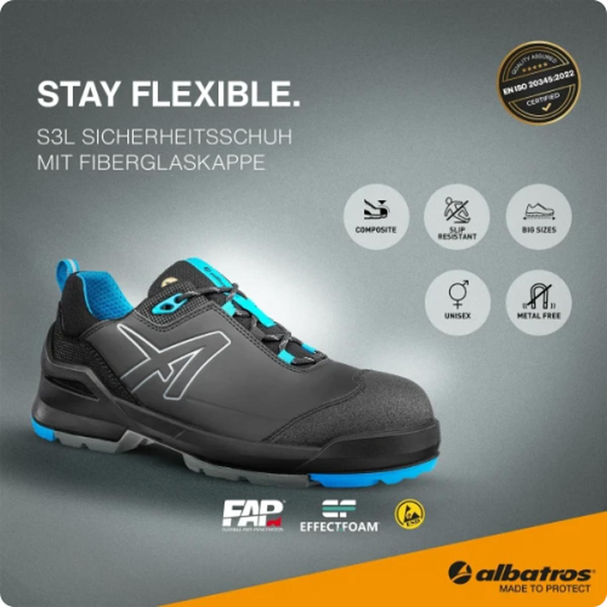 800225, VEL.43, DELOVNI ČEVELJ, NIZEK, S3 ESD, ČRNO/MODER, TARAVAL |