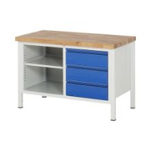 Delovna miza z nastavljivo višino s 3 predali in 2 odlagalnima policama, RAU
