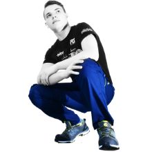 Delovne hlače na pas:- Kvalitetne delovne hlače z veliko žepi- Temno modre barve z elegantnimi dodatki na robovih žepov- Material: 35% bombaž in 65% poliester- Barva: temno modra- Teža: 245 g/m²
