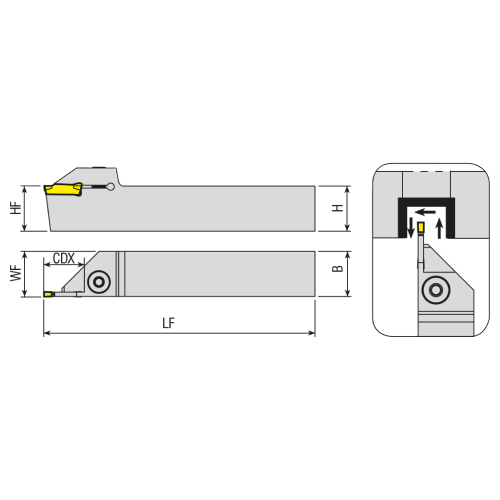 Odrezilno držalo ADKT-K-R/L je namenjeno za precizno vzdolžno in odrezovalno obdelavo različnih materialov na CNC stružnicah.
