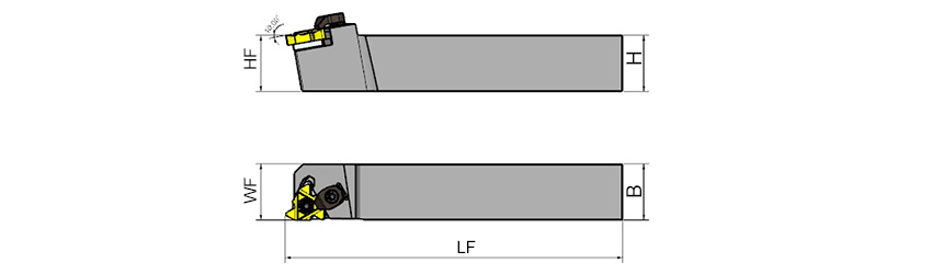 Držalo je primerno za standardne navoje (npr. ISO, UN) z različnimi geometrijami navojev in je združljivo z vpenjanjem stružnih ploščic za navoje z vpenjalnim vijakom.
