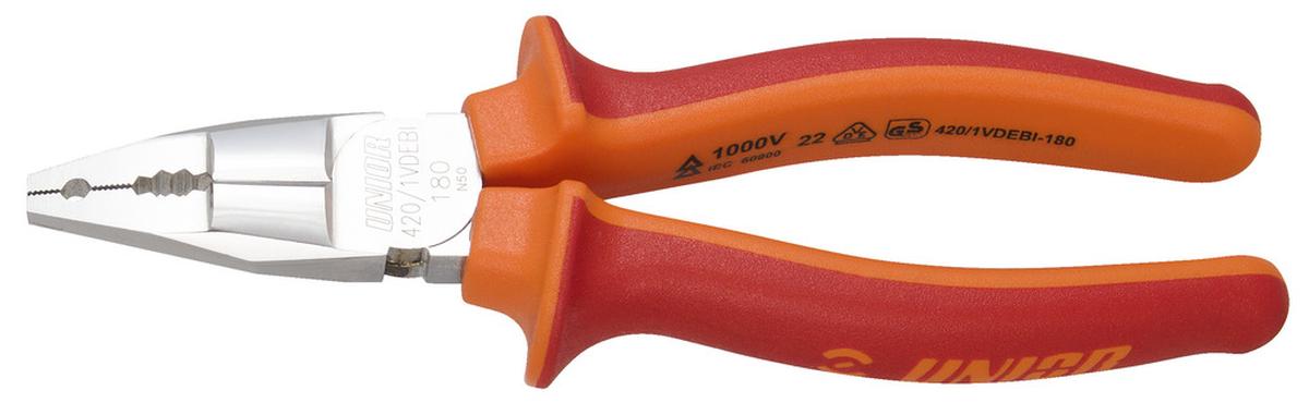 Material: Premium Plus ogljikovo jeklo,kovane, v celoti poboljšane. Robovi rezil induktivnokaljeni. Glava klešč polirana. Površinska zaščita: kromirane po ISO 1456:2009. Ročaji izolirani z dvo-komponentnimi tulci. V celoti izdelane v skladu s standardom EN IEC 60900.