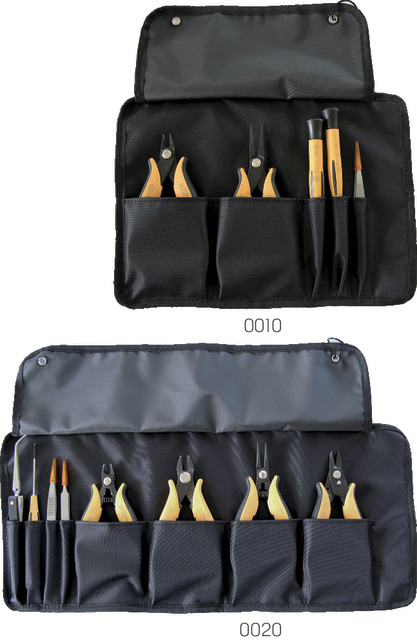 <b>Elektronik Werkzeug-Set 5-teilig</b><br/><b>1 Pinzette</b> mit flachen runden Backen<br/><b>1 Seitenschneider</b> mit glattem Schnitt für Soft-Drähte<br/><b>1 Spitzzange</b> lang<br/><b>1 Schraubendreher</b> Schlitz<br/><b>1 Schraubendreher</b> PH, <b>Elektronik Werkzeug-Set 8-teilig</b><br/><b>2 Pinzetten</b> flache und runde Spitzen<br/><b>2 Seitenschneider</b> Micro- und Medium-Kopf für Soft-Drähte<br/><b>2 Spitzzangen</b> lang, geriffelte und glatte Backen<br/><b>2 Micro-Schraubendreher</b> Schlitz und PH