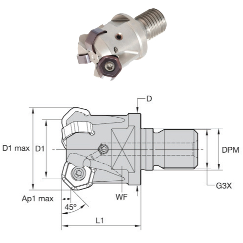 Garnitura je namenjena mehanski obdelavi kovinskih materialov pri rezkalnih postopkih. Primerna je za uporabo v industrijskih obdelovalnih okoljih z izmenljivimi rezalnimi ploščicami.