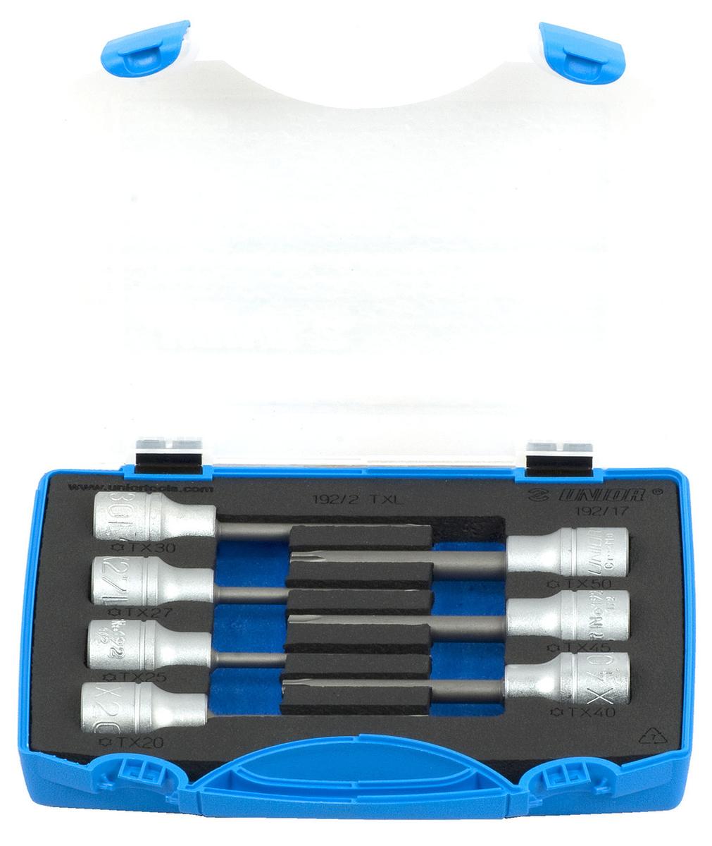 Garnitura vijačnih nastavkov s TX profilom, dolgih, v plastični kaseti