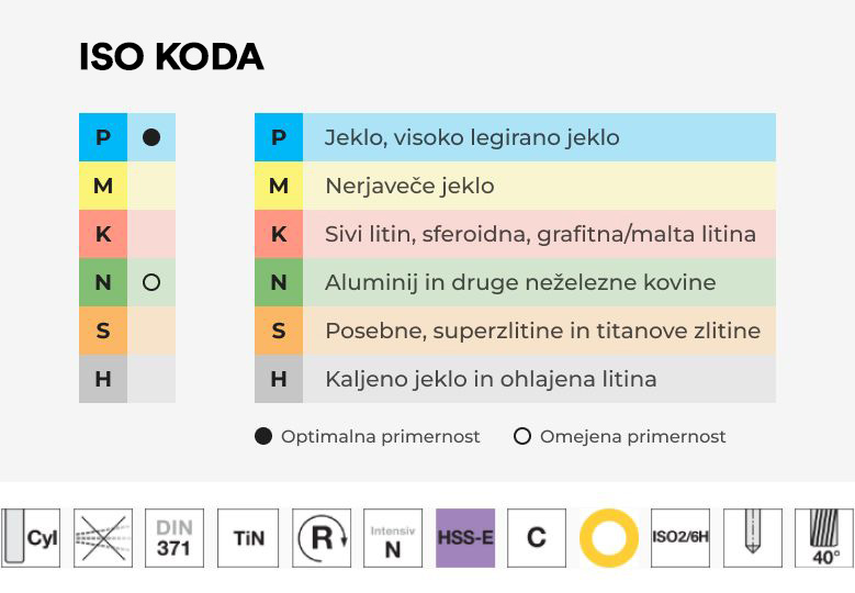 Ausführung: für Grundgewinde • Nuten mit ca. 40° Rechtsdrall • Spanförderung in Schaftrichtung • allgemeine Anwendung