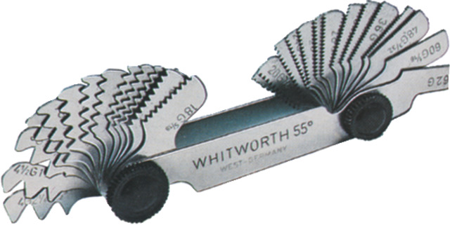 Zum Prüfen der Steigungen an Außen- und Innengewinden.