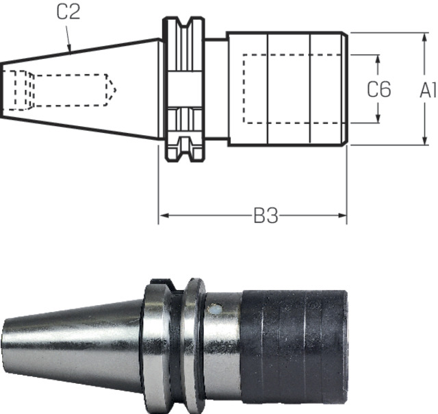 Standard-Futter zur Aufnahme von Gewindebohrern auf mechanisch und NC-gesteuerten Dreh-, Bohr- und Fräsmaschinen und Bearbeitungszentren.