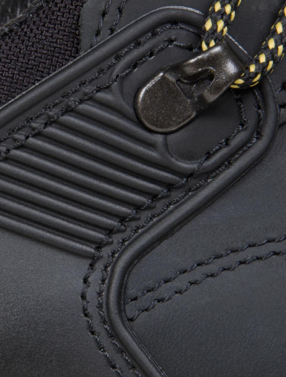 Robusten čevelj iz grobega usnja z jekleno kapico in jekleno zaščito pred prebodom nudi zanesljivo zaščito v zahtevnih delovnih okoljih.