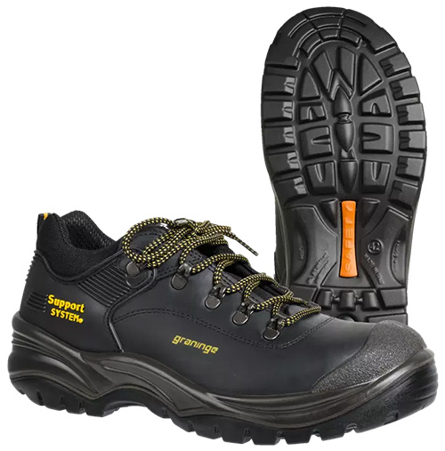Vzdržljiv zaščitni čevelj z jekleno zaščito.