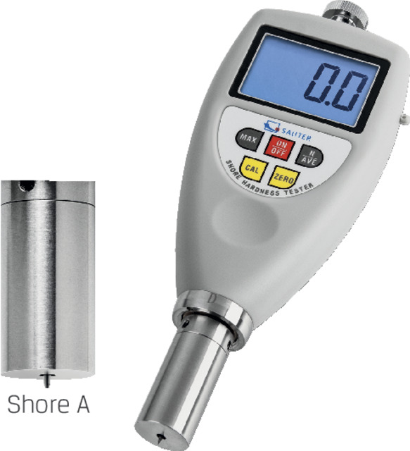 - (Shore A) für Gummi, Elastomere, Neopren, Silikon, Vinyl, weiche Kunststoffe, Filz, Leder und ähnliche Materialien