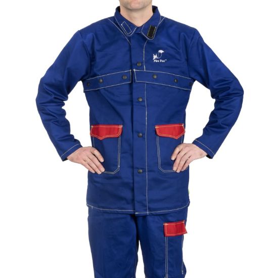 33-2300, Vel.XL, JAKNA VARILNA MODRA, BOMBAŽNA, ZA ZAVIRANJE ŠIRJENJA OGNJA,WELD