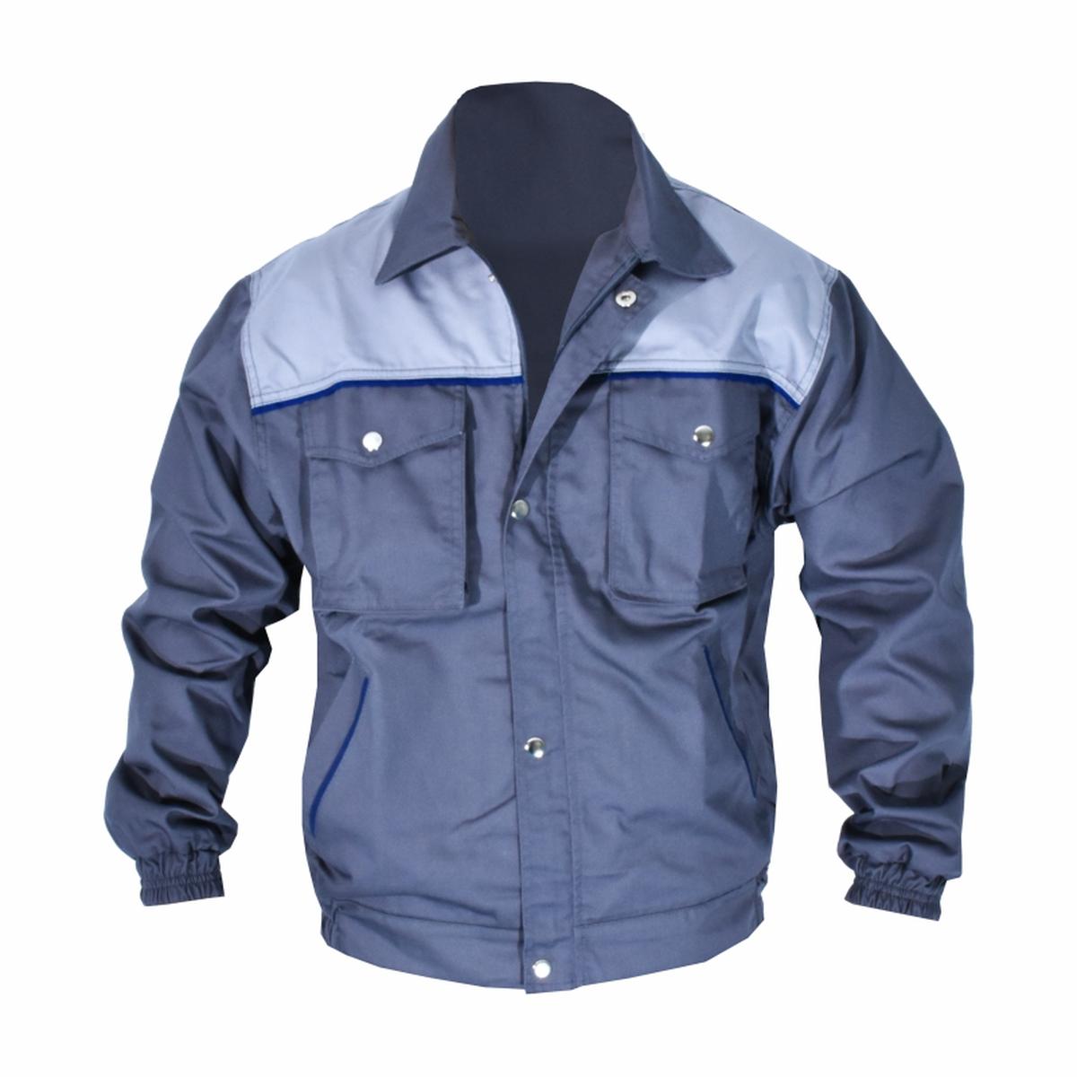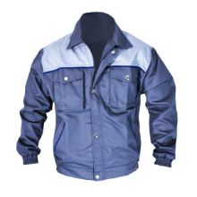 Delovna jakna- Kvalitetna delovna jakna z dvojnim zapiranjem (zadrga/gumbi)- Dva žepa na prsih z možnostjo zapiranja in dva žepa v pasu- Material: 35% bombaž in 65% poliester- Barva: temno/svetlo modra, temno modra- Teža: 245 g/m²