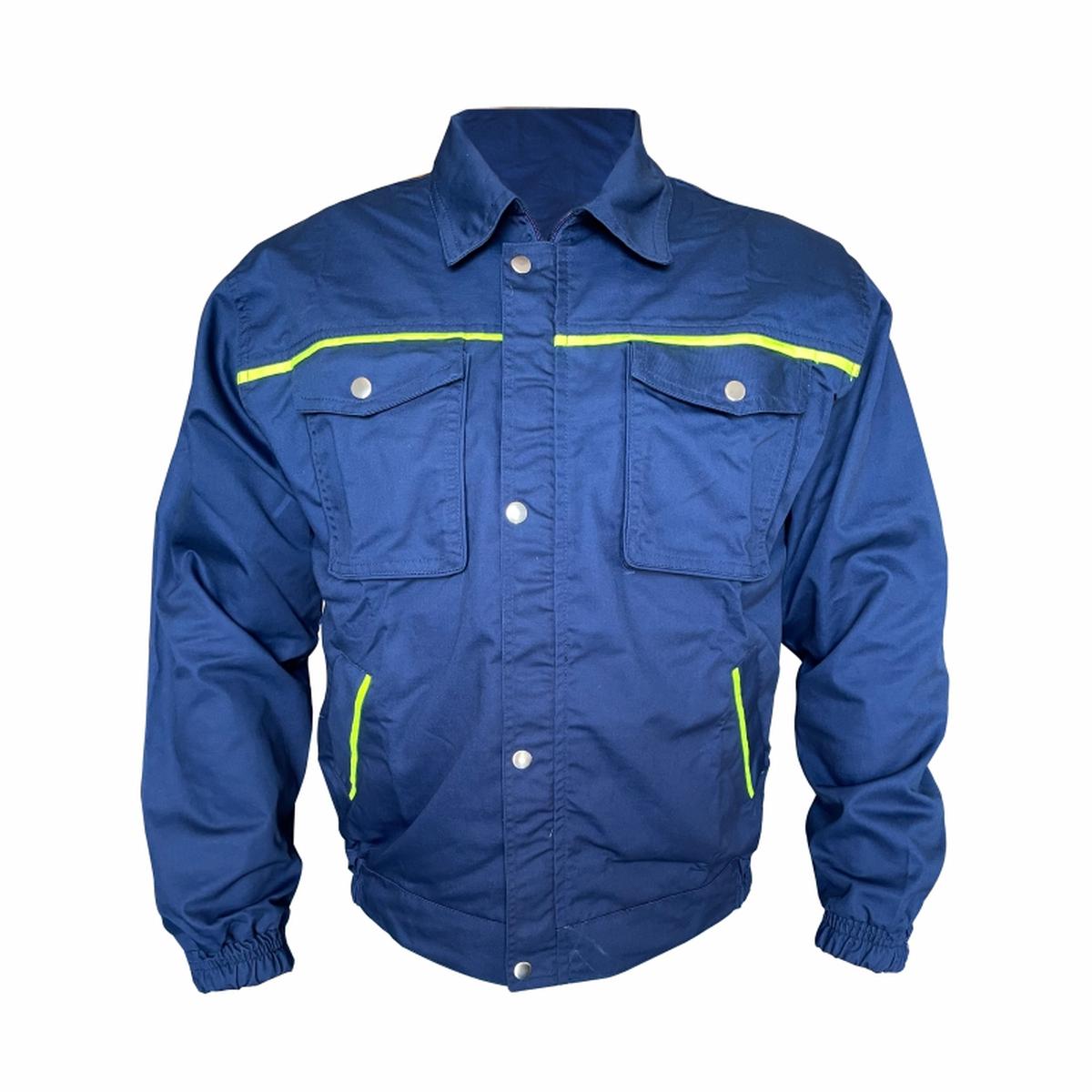 Delovna jakna- Kvalitetna delovna jakna z dvojnim zapiranjem (zadrga/gumbi)- Dva žepa na prsih z možnostjo zapiranja in dva žepa v pasu- Material: 35% bombaž in 65% poliester- Barva: temno/svetlo modra, temno modra- Teža: 245 g/m²