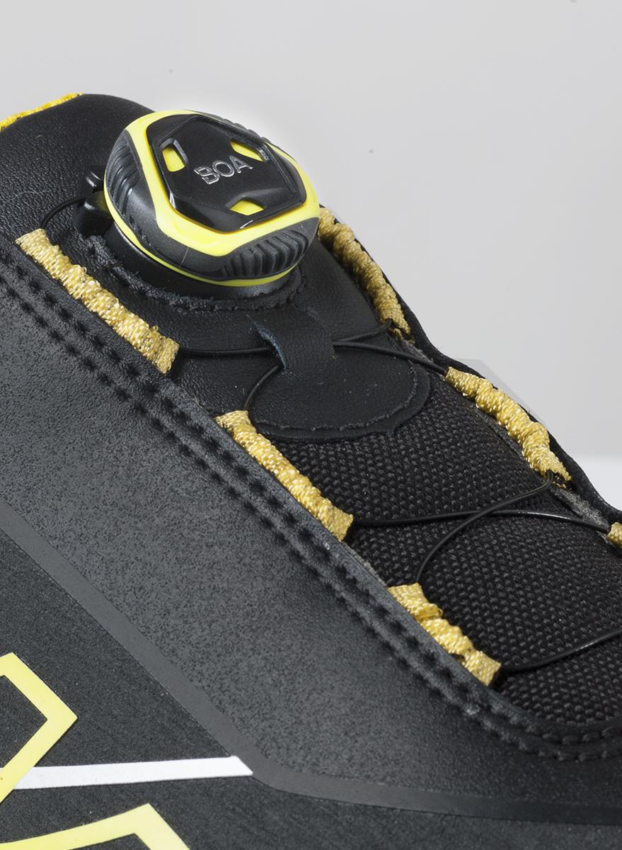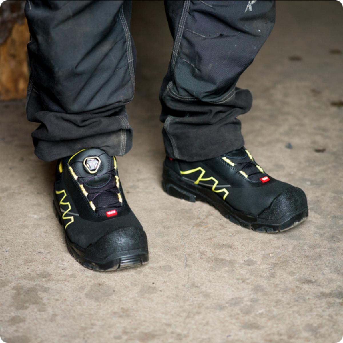 Nizki čevlji z dodatno širino. Odlična zaščita v zahtevnih okoljih. BOA® Fit sistem za popolno prileganje ter enostavno obuvanje in sezuvanje. Vložek za zaščito nohtov iz jekla in kapica iz aluminija. PU vmesni podplat, zun. podplat iz gume in zg. material iz usnja, premazanega s PU.