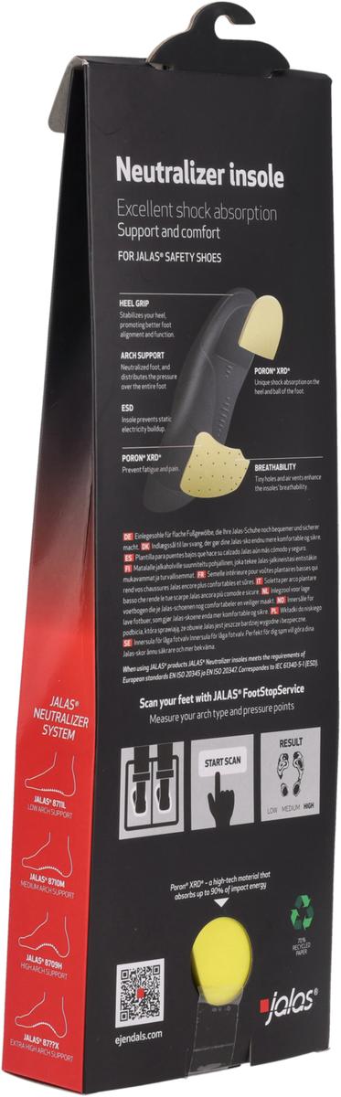 Vložek JALAS je zasnovan za podporo nizkim stopalnim lokom in povečuje udobje ter varnost čevljev JALAS®. Dvojna območja za blaženje udarcev iz materiala PORON® XRD® zmanjšujejo tveganje poškodb in zagotavljajo dodatno udobje pri dolgotrajnem nošenju.