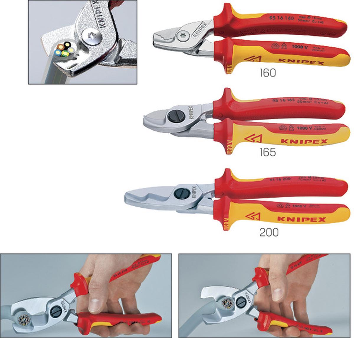- Dolžina 200 mm: z dvojnim rezom za kable do 25 mm in max. 70 mm²