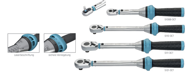 Opremljen je s fino skalno delitvijo, integrirano preklopno ragljo in zvočno ter otipljivo povratno informacijo ob doseženem navoru.