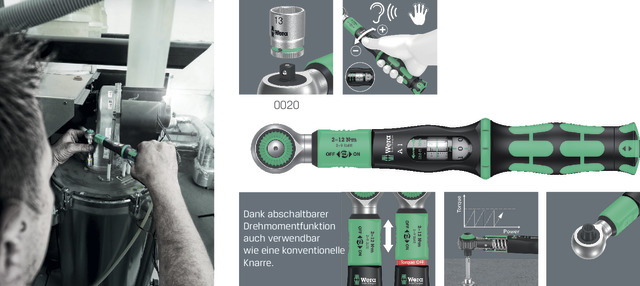 Vrednost navora se enostavno nastavi in zaklene, mehanski sistem pa z zvočnim in otipljivim signalom prepreči prekomerno zategovanje.