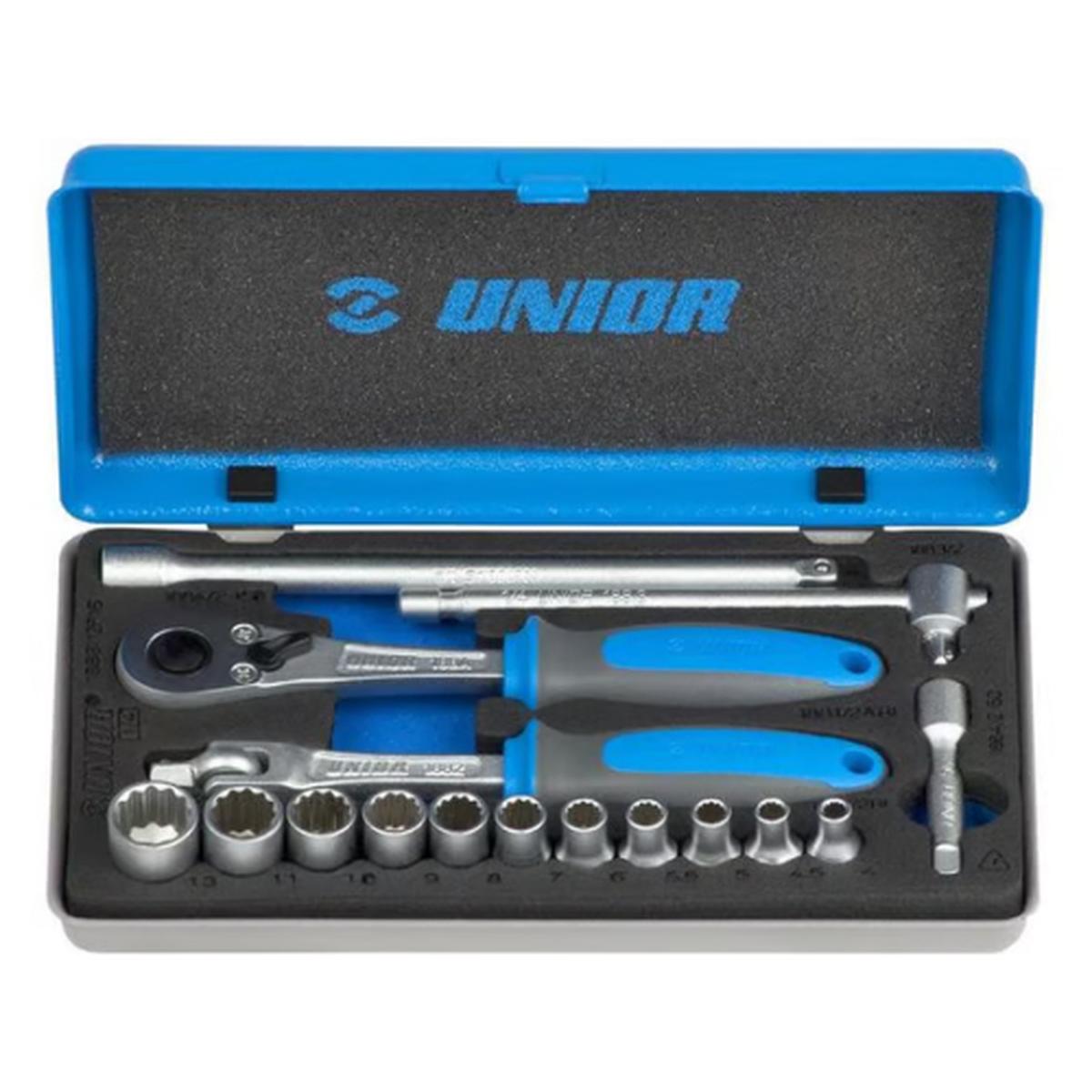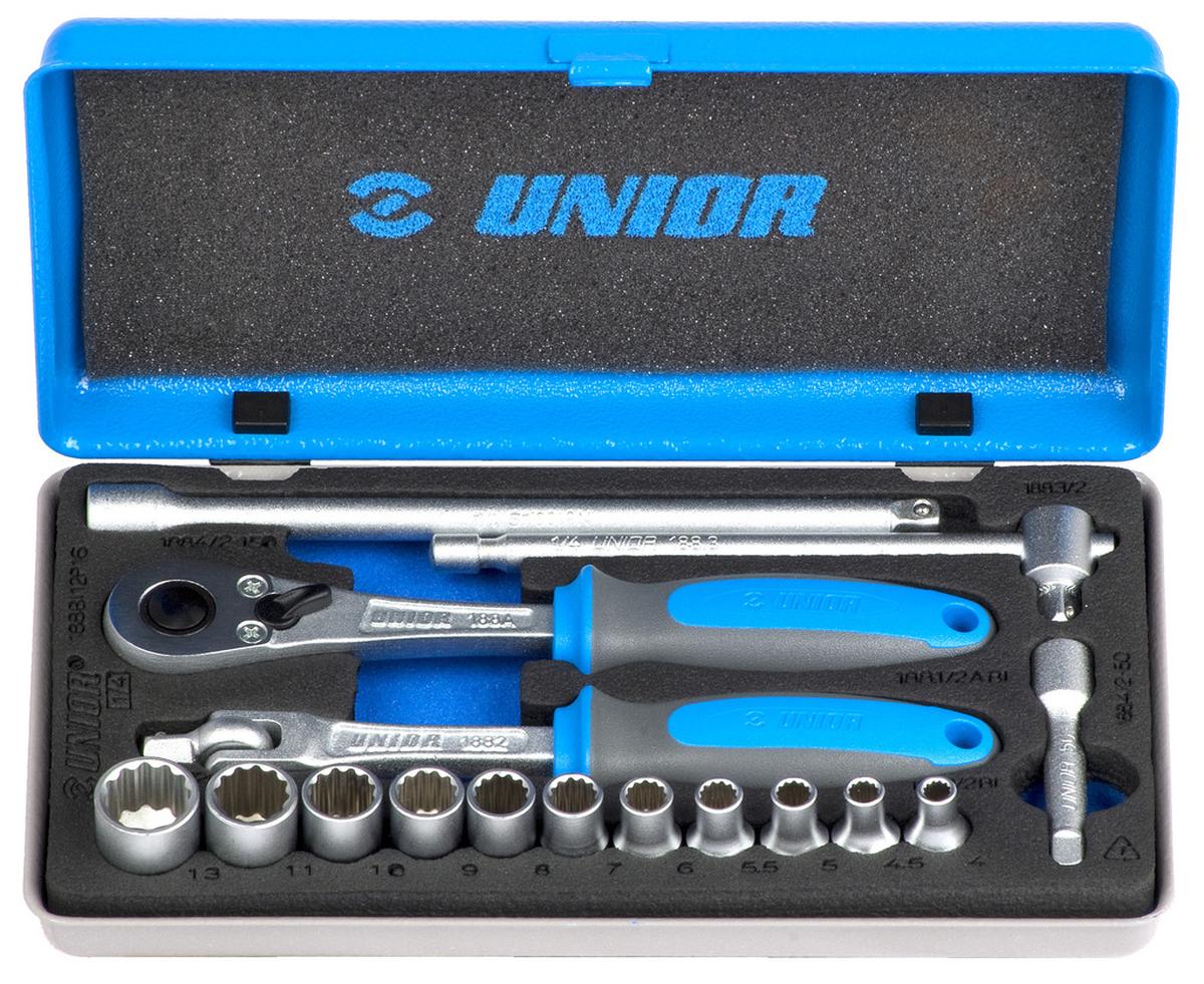 KLJUČ NASADNI 1/4" Art.188BI12P16 4-13mm v 16-delni garnituri vključno z ragljo in podaljški (v kovinski kaseti)
