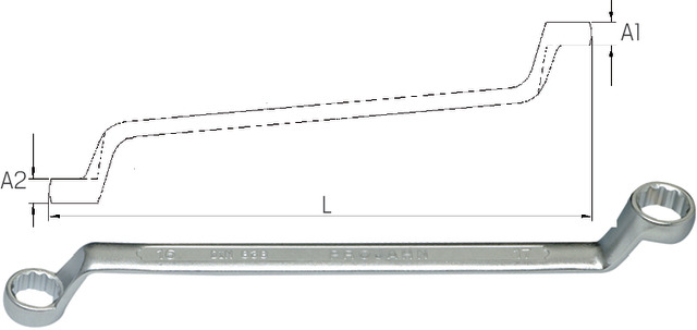 Obročni ključ iz visoko kakovostnega krom-vanadijevega jekla, za dolgotrajno in zanesljivo uporabo pri profesionalnih delih.