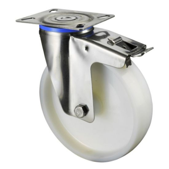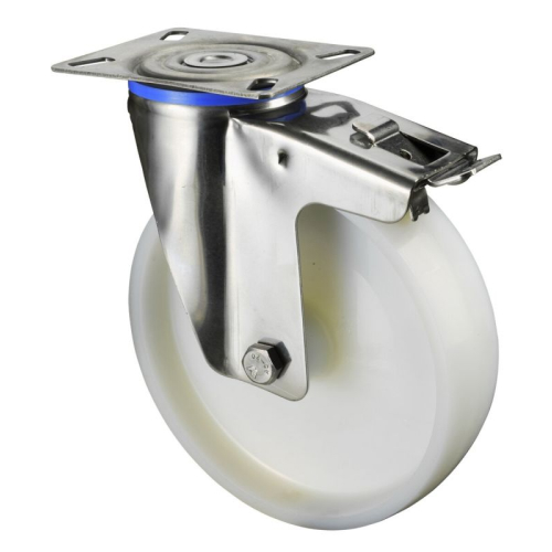 Kolo transportno gibljivo z zavoro, iz poliamida, bele barve