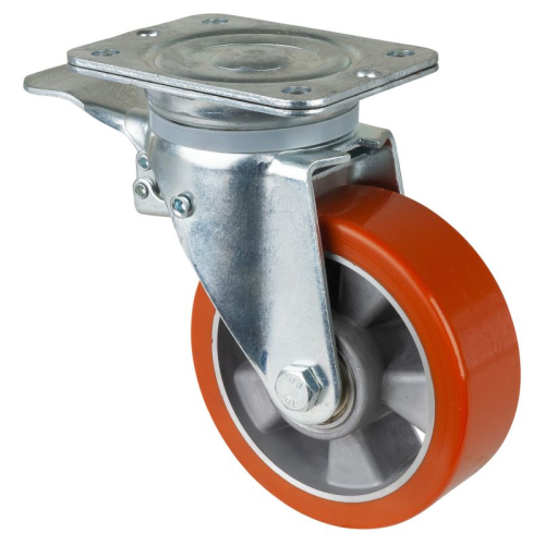 Kolo transportno gibljivo z zavoro, iz poliuretana in aluminija