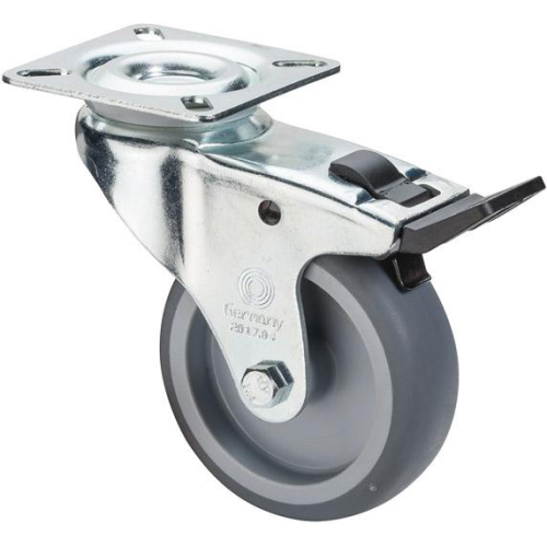 Kolo transportno gibljivo z zavoro, termoplastična guma