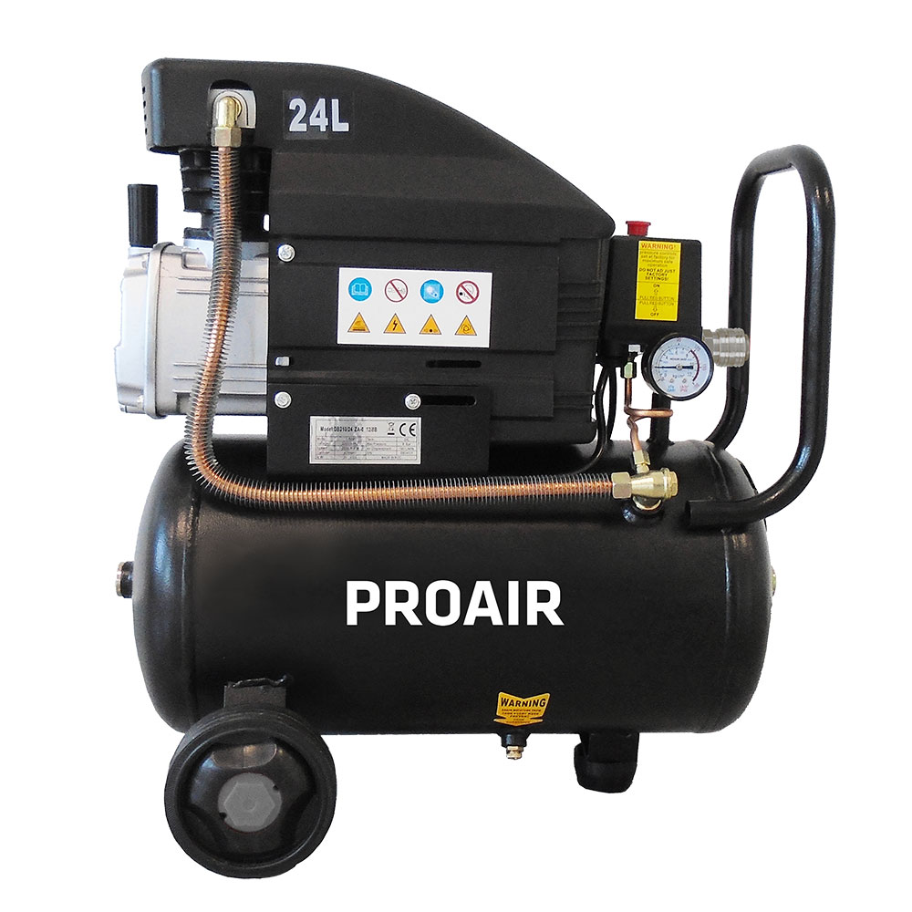Kompresor ima 24-litrski rezervoar in deluje na enofazno napajanje. Zasnova omogoča zanesljivo delovanje in enostavno vzdrževanje.