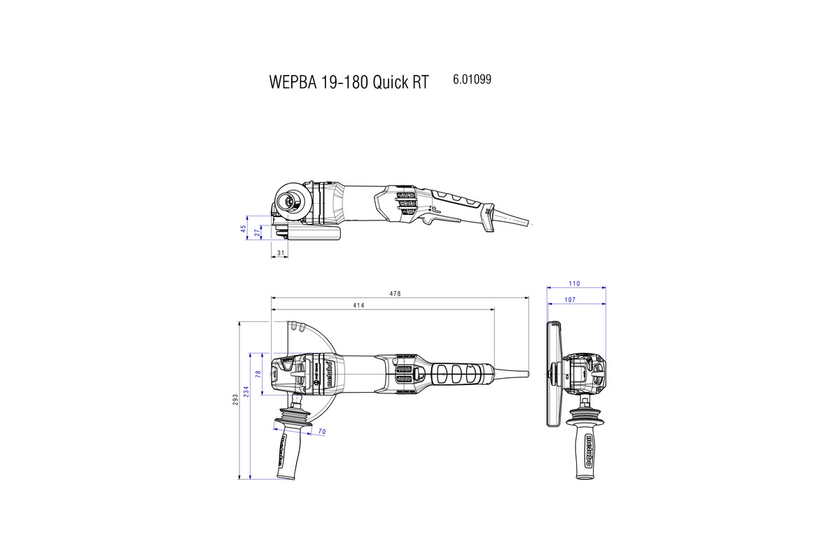 Najzmogljivejši 1.900 W stroj za industrijsko obdelavo zvarov in enako globino rezanja kot veliki kotni brusilnik (O 230 mm) pri samo polovični teži
