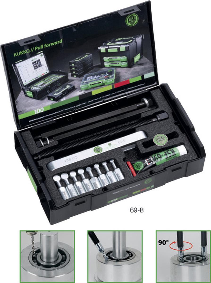Zum einfachen Abziehen von Kugellagern aller Bauarten aus Gehäusen ohne Ausbau der Welle. Erfolgt durch Anziehen der Druckspindel der Abziehvorrichtung gegen die Welle, auf der das Lager sitzt.