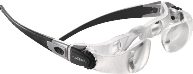 - sehr leichte Lupenbrille mit zwei voneinander unabhängigen Linsen (Galileisystem)