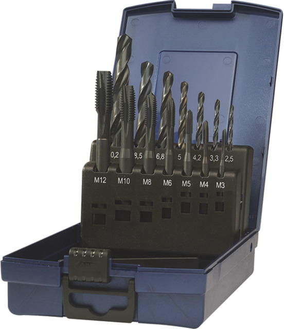 Maschinengewindebohrer 132310 M3-M10<br/>Maschinengewindebohrer 132410 M12<br/>Spiralbohrer 100020 Ø 2,5 | 3,3 | 4,2 | 5 | 6,8 | 8,5 | 10,2 mm