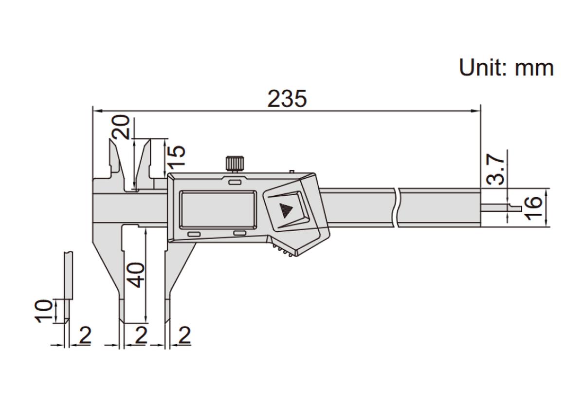 MERILO POMIČNO DIGITALNO 0-150mm/0,01mm z tankimi merilnimi kljuni 2mm in s poda