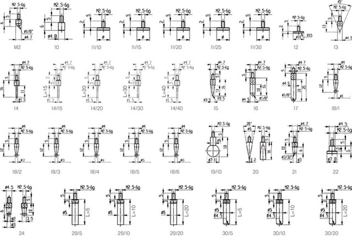 - für Messwerkzeuge mit Aufnahmegewinde M 2,5 zum Erstellen von Sondermessmitteln