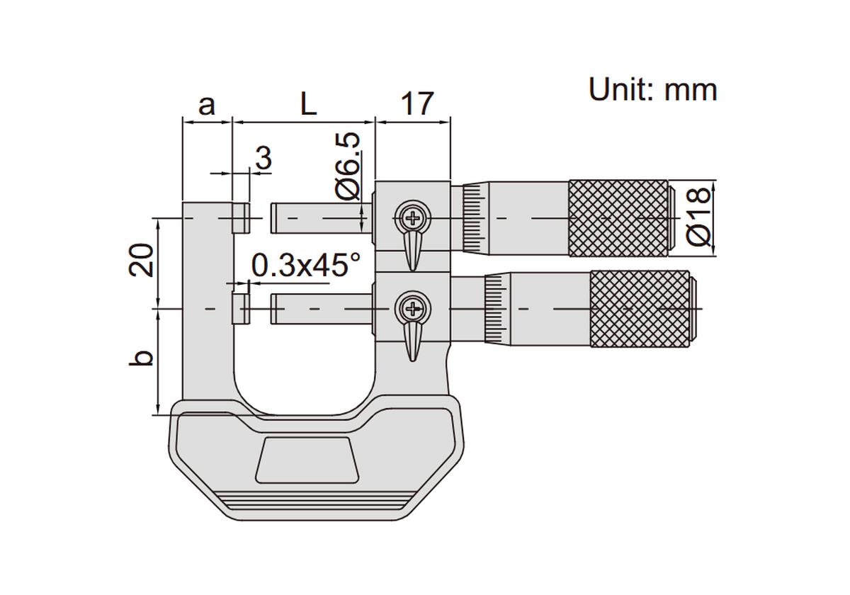 MIKROMETER LIMIT 0-25MM (±4µMM), L:32MM, INSIZE
