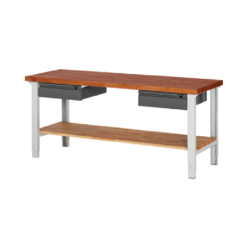 Masivna delovna plošča iz rdeče bukovine debeline 40 mm je izdelana iz lepljenih klinastih spojev (keilzinken). Sprednji rob je zaobljen z radijem, ostali robovi pa so fazetirani, kar zagotavlja varno in udobno uporabo.