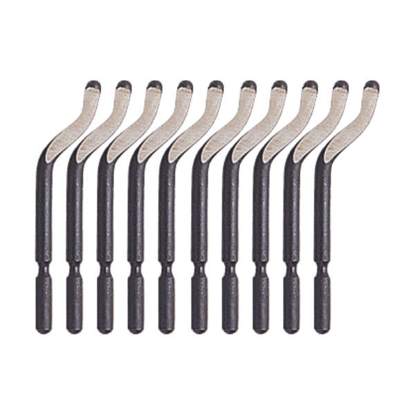 Nož E100 je izdelan iz hitroreznega jekla (HSS) in je namenjen učinkovitemu posnemanju robov na različnih materialih. Zaradi svoje oblike in ostrine omogoča hitro in natančno odstranjevanje robov ter izboljšuje varnost in estetiko obdelovanca.