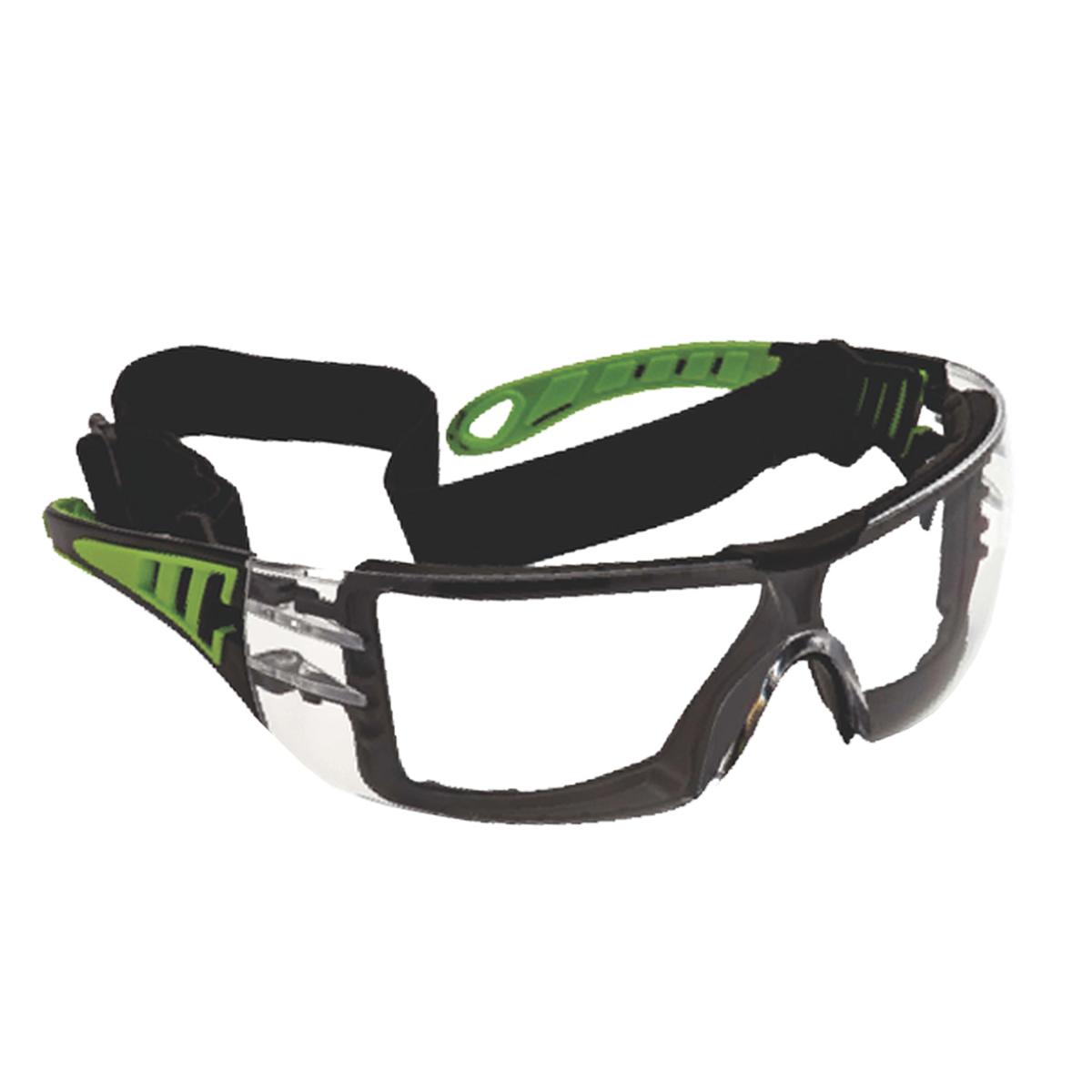 OČALA ZAŠČITNA Modell 585, prozorno steklo 2mm, odporno na praske in meglenje, črno-zelene