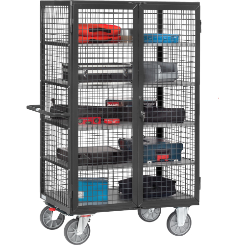 Fetra omara na kolesih iz žične mreže v barvi RAL 7016 (antracitno siva) združuje robustnost, mobilnost in tiho delovanje – popolna rešitev za varno in pregledno shranjevanje v profesionalnih okoljih.