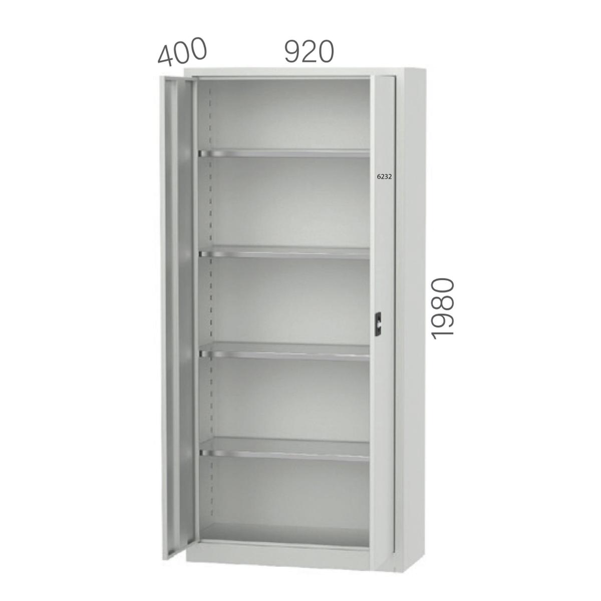 V notranjosti se nahajajo štiri nastavljive police dimenzij 360 x 915 mm, ki prenesejo do 75 kg na polico. Omara ima centralni zaklepni sistem za učinkovito varovanje vsebine. Dimenzije omare so 1980 x 920 x 400 mm, kar omogoča dovolj prostora za raznovrstno skladiščenje.