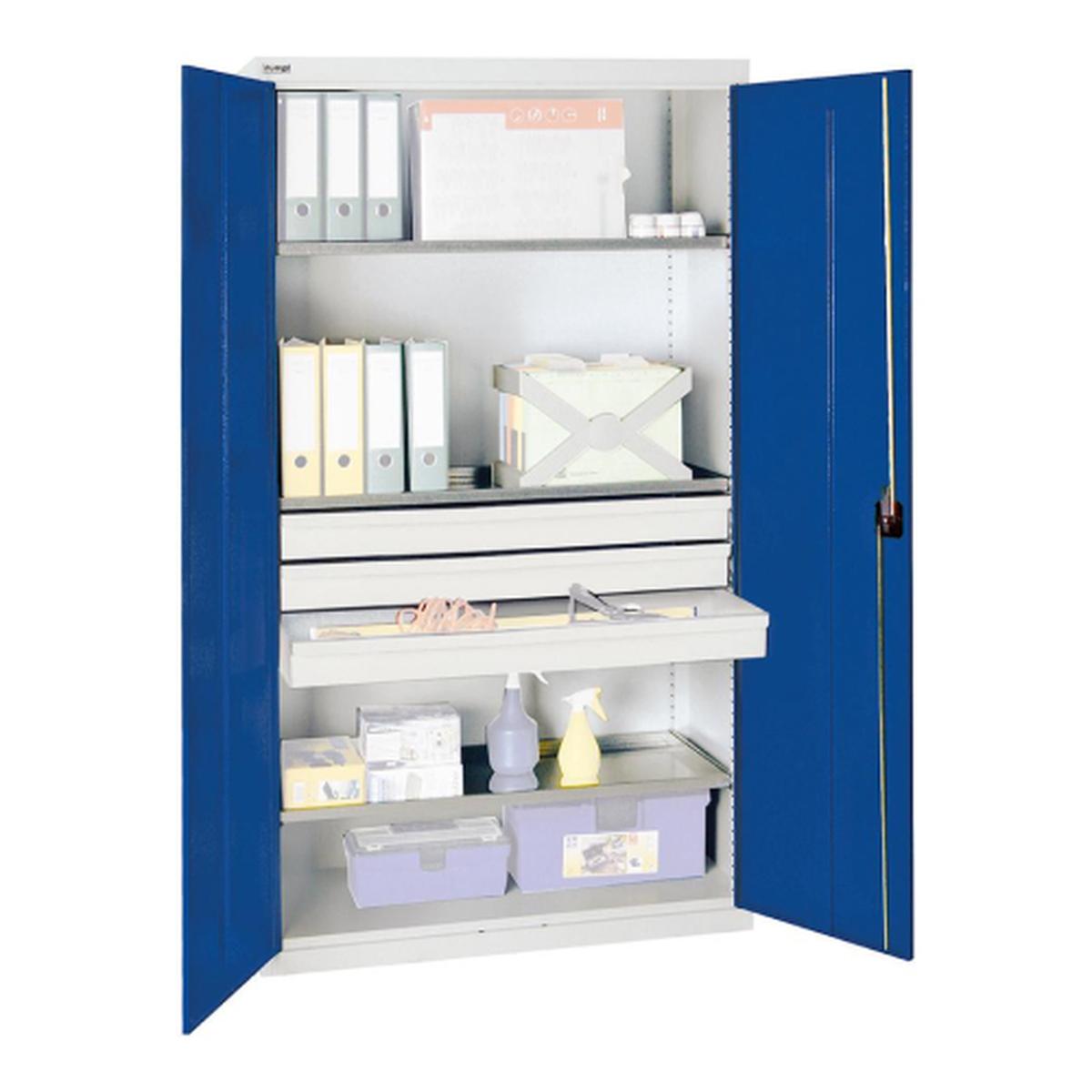 OMARA ZA ORODJE IN MATERIAL S 3 PREDALNIKI IN 3 POLICAMI, 1000X500X1800MM, MODRA, STUMPF