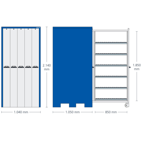 Omara za orodje z izvlečnimi predali je namenjena shranjevanju in organizaciji orodja v delavnicah in proizvodnih obratih. Omogoča dostop z obeh strani ter pregledno in varno razporeditev orodja.