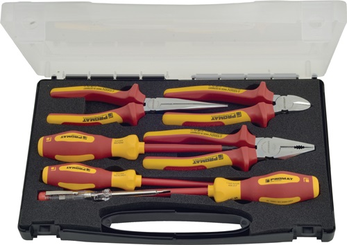 ORODJE ZA ELEKTRIČARJE V 7-delni garnituri (3xklešče, 3xizvijači,1x preizkuševalec napetosti) VDI(do 1000V)