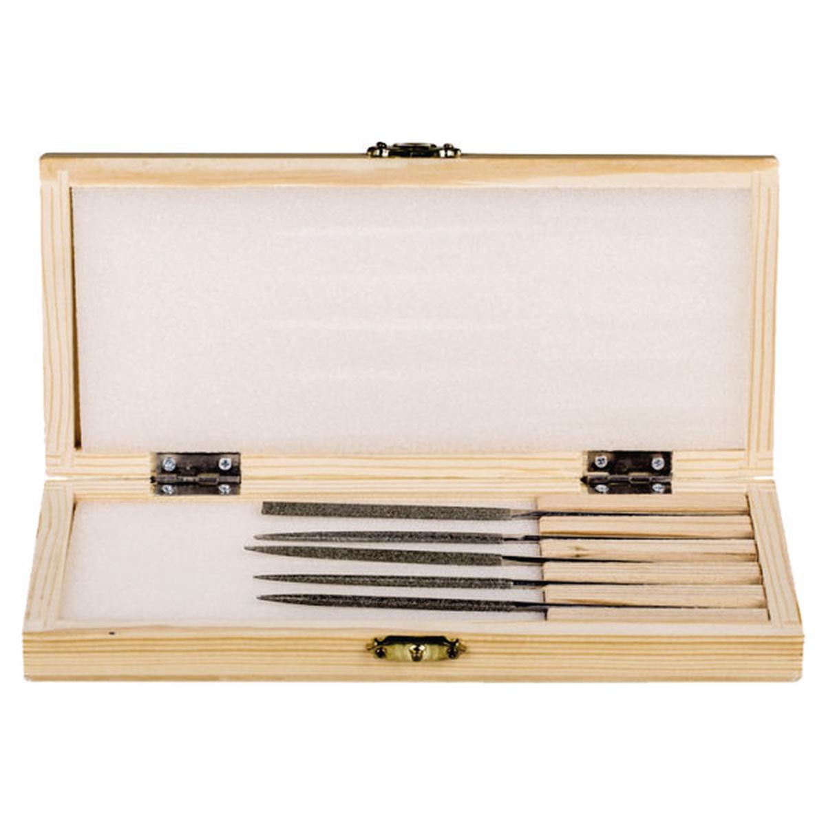 -Vsebina: 5-delna garnitura pil s po eno ravno, polokroglo, trikotno, kvadratno in okroglo pilo